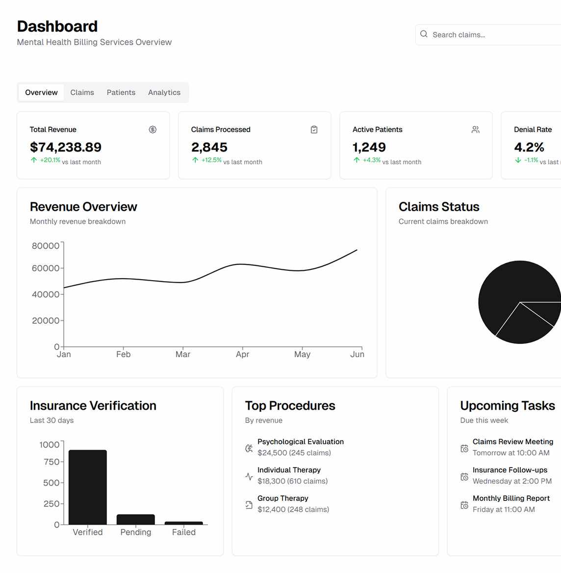 Timely submission of accurate claims helps mental health providers receive reimbursements faster. Our team tracks claims from submission to payment, ensuring no revenue is lost due to delays or errors.